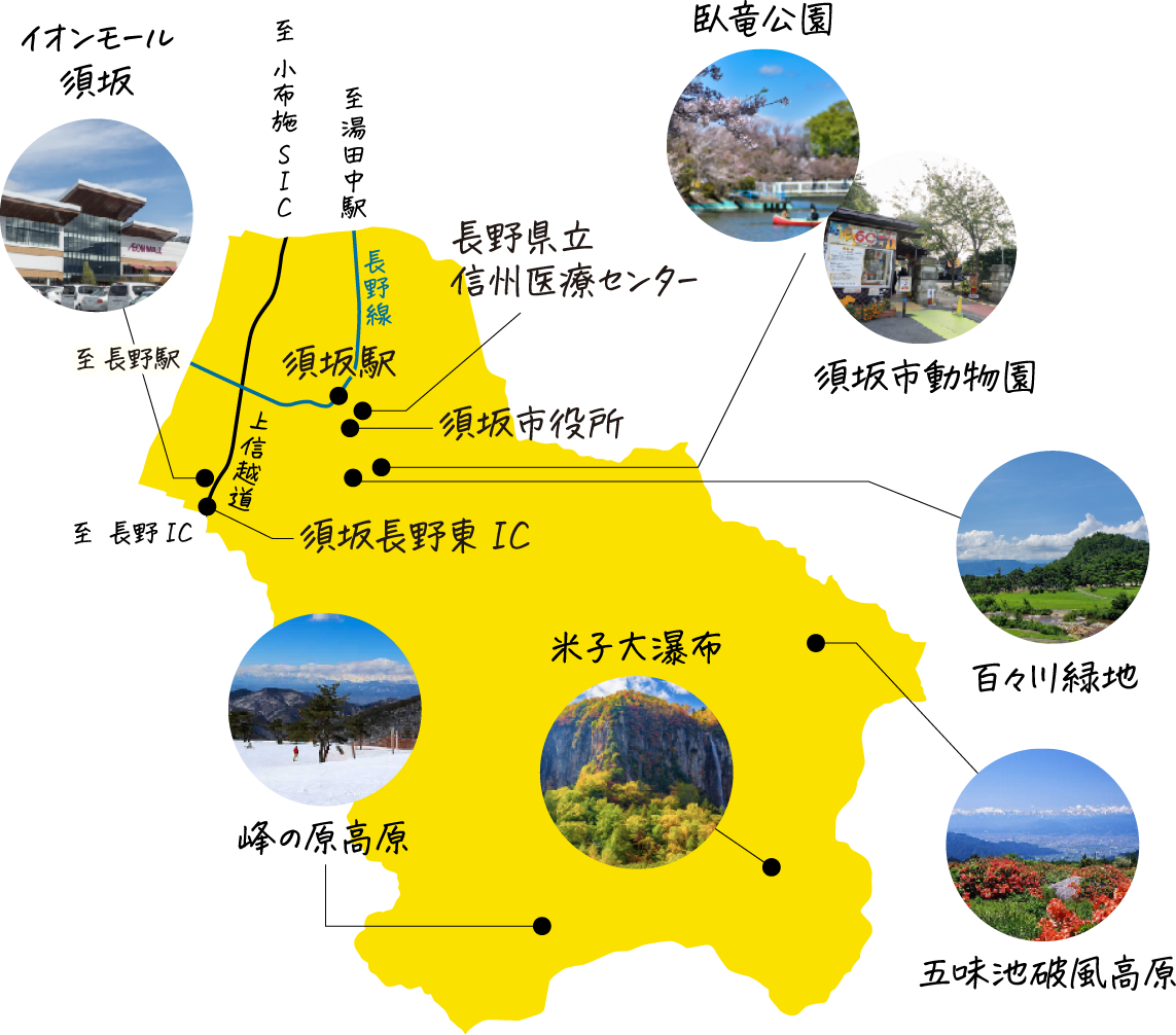 高速道路(上信越道)の「須坂長野東インターチェンジ」もあり、各地へのアクセスも便利です。